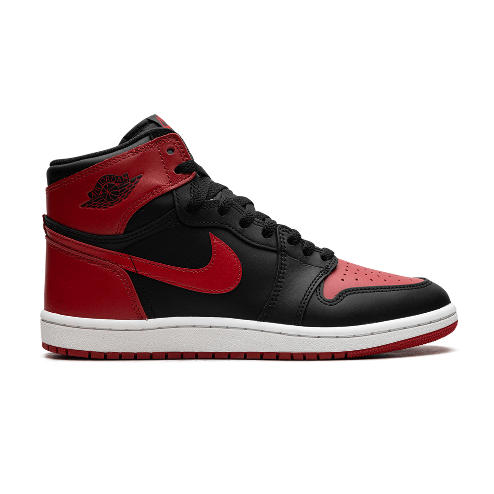The Air Jordan 1 High ’85 “Bred” is a 2025 edition of the iconic black and red colorway of Michael Jordan’s first signature shoe. To mark the 40th anniversary of the sneaker’s release, the 2025 AJ1 “Bred” was made as close to the original 1985 specifications as possible. That means this Jordan 1 is slightly higher than other AJ1 Highs and has a larger Swoosh. This Air Jordan 1 “Bred” also features premium leather across the black and red upper.