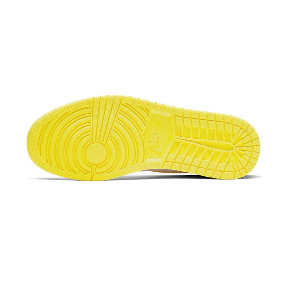 Jordan Brand is set to release a brand new Air Jordan 1 dubbed, “First Class Flight” that is inspired by their shipping department.Dressed in a White, Dynamic Yellow, and Black color scheme. This Air Jordan 1 features a White perforated leather upper highlighted with Yellow contrasting accents throughout. Black is used on the special details like UPC barcodes stamped on the lateral ankle – which reads “First Class Flight” and heel, a “23” recycling symbol, along with Michael Jordan’s signature.
