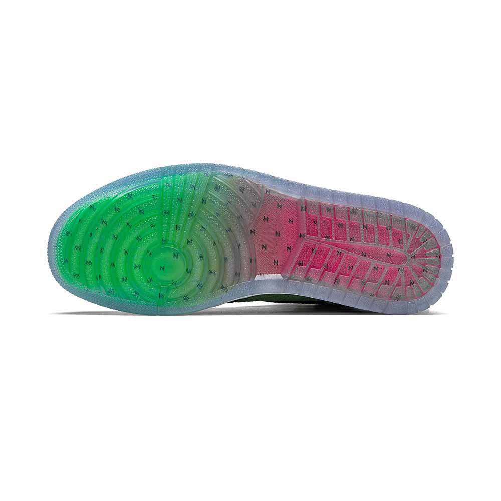 The Air Jordan 1 High Zoom “Zen Green” incorporates Zoom Air technology into the sole of Michael Jordan’s first signature shoe. The Jordan 1 Zoom model made its debut late in 2019 to much success. Now, Jordan Brand returns with this “Zen Green” design as part of its Summer 2020 release cycle, and the results are clearly as favorable. Hairy Zen Green suede dots the perforated toe and mid-panel. Supple black leather overlays can be found on the forefoot, eyelets, collar, and heel. A Silver Metallic Swoosh is located on the mid-panel and features contrasting green stitching. Tonal “Wings” detailing appears on the collar and a mini nylon Zoom tag can be found on the mid-panel beneath the collar. A vibrant neon green sock liner contrasts the black nylon tongue. As previously mentioned, Zoom Air cushioning is embedded within the sole to provide the wearer ample amounts of support.
