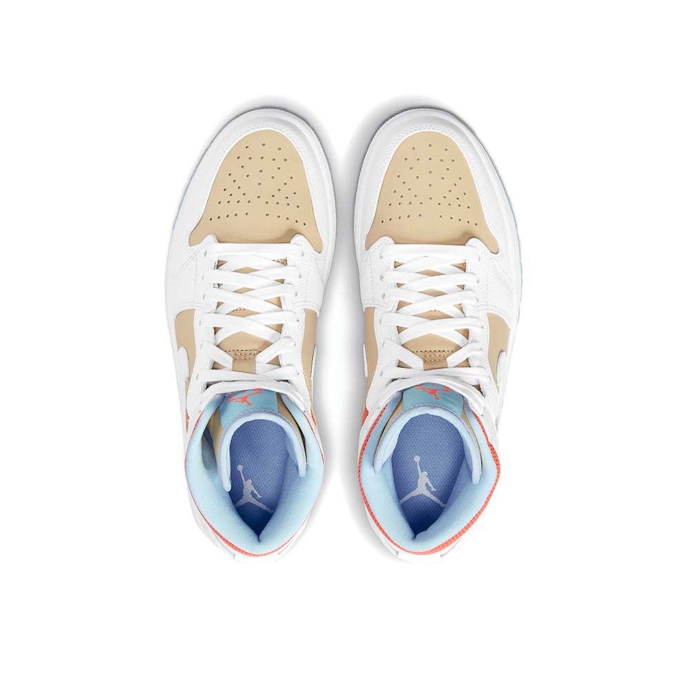 Jordan Brand has been revealing several new upcoming “SE” editions of the Air Jordan 1 Mid, and next up is this “Sesame” offering.Dressedin a Sesame, White, Flash Crimson, and Psychic Blue color scheme. This mid-top Air Jordan 1 features a Tan toe box, side panels, and tongues with White perforated leather overlays and Crimson ankle collars. Light Blue tongue labels, inner lining, and rubber outsole atop a White midsole completes the design.